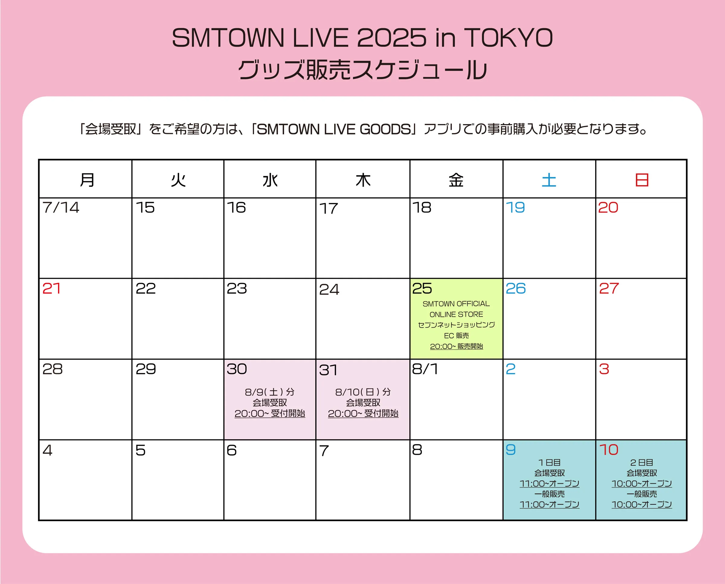 ※「会場受取」をご希望の方は事前に「SMTOWN LIVE GOODS」アプリでの事前購入が必要となります。
